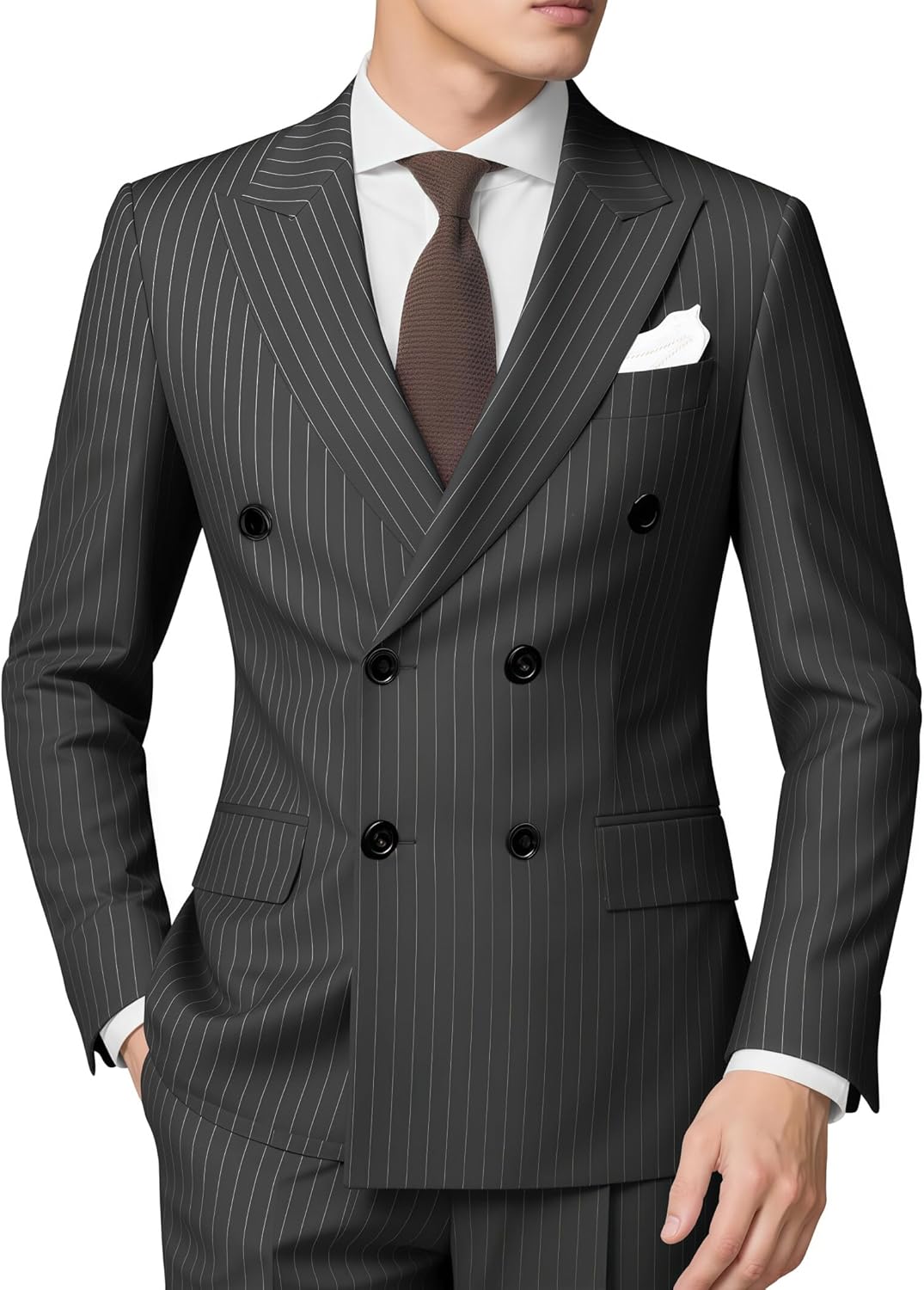 | Fabric Type | 80% Polyester, 20% Viscose;Mens Suits 2 Piece Pinstripe Suit Dark Grey Double Breasted Blazer and Pant for Formal Wedding Business. |